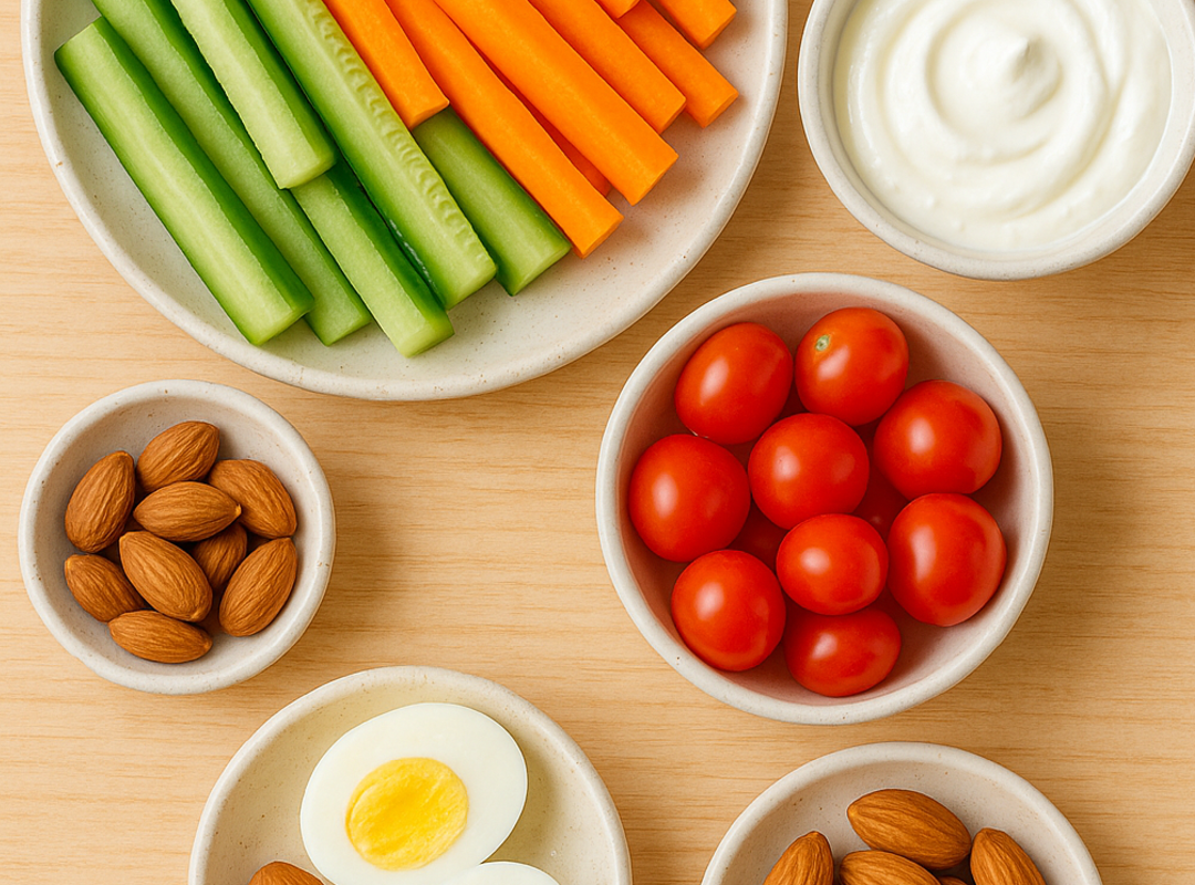 ✨ 핵심 1: 단백질 & 섬유질이 풍부한 간식을 선택해 포만감을 높이세요. (예: 그릭 요거트, 삶은 계란)